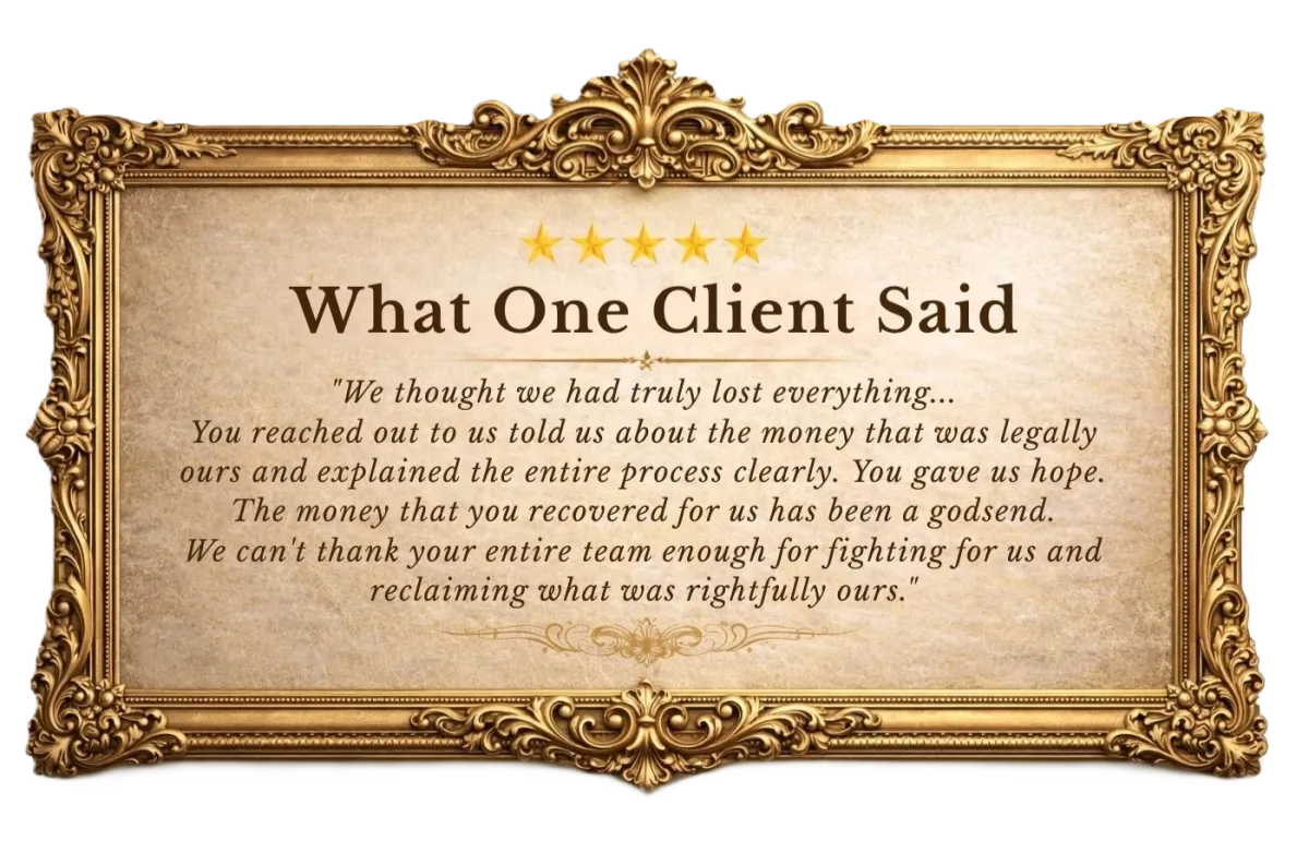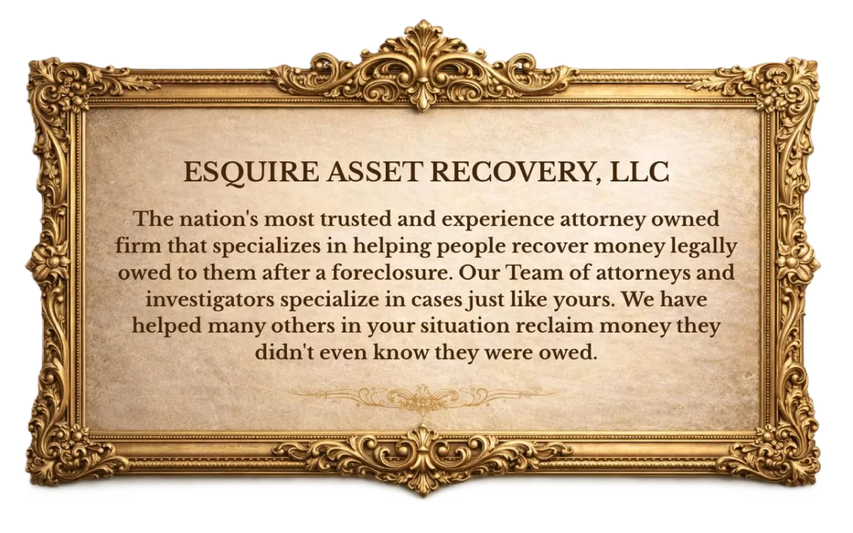 The nation's most trusted and experience attorney owned firm that specializes in helping people recover money legally owed to them after a foreclosure. Our Team of attorneys and investigators specialize in cases just like yours. We have helped many others in your situation reclaim money they didn't even know they were owed.